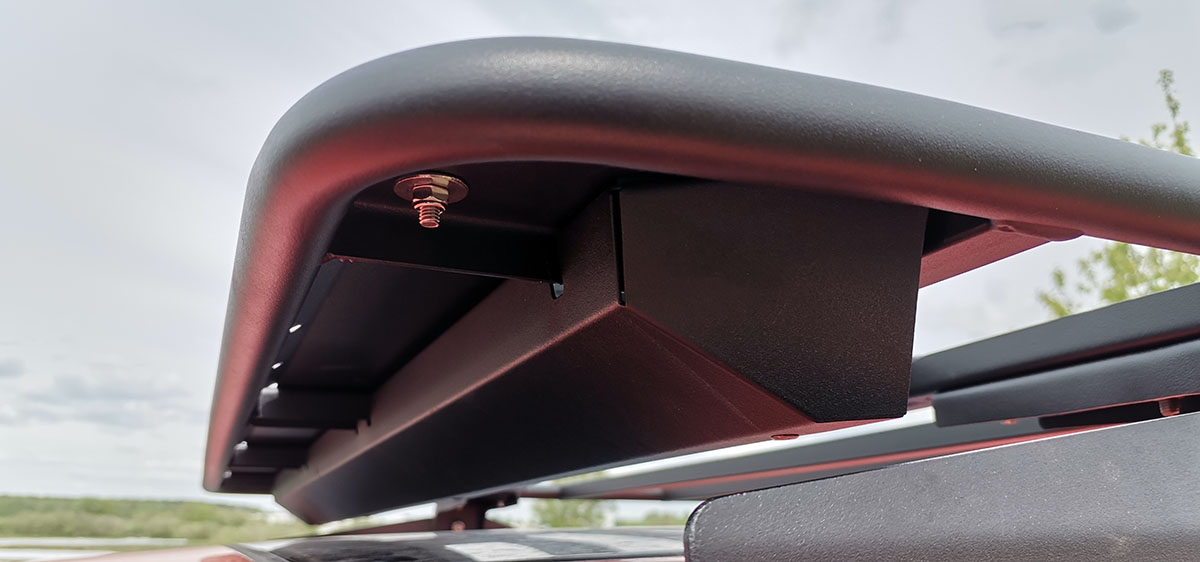 Наличие дефлектора значительно снижает аэродинамический шум, возникающий из-за набегающего воздушного потока вокруг экспедиционного багажника на высоких скоростях, что обеспечивает более комфортные условия водителю и пассажирам в длительных поездках.