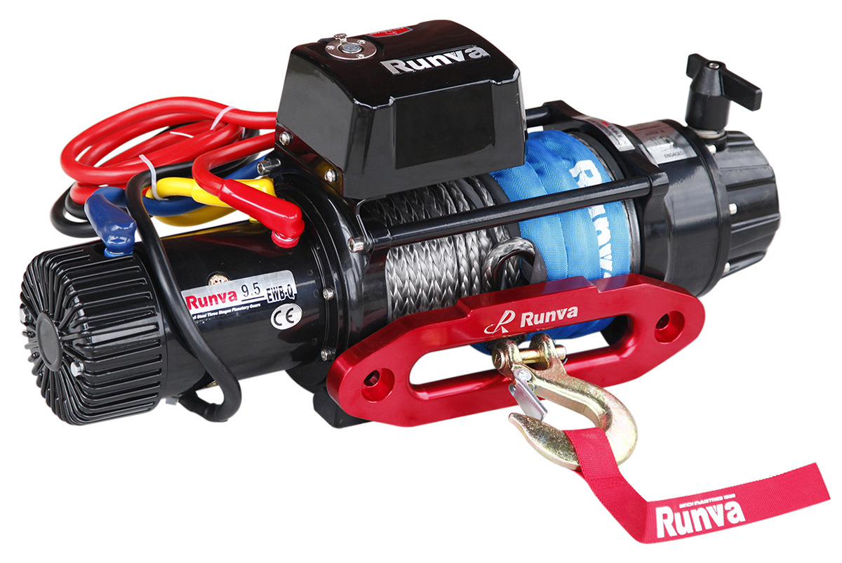 Лебёдка автомобильная электрическая 12V Runva EWB9500USR 4350 кг влагозащищенная, синтетический трос