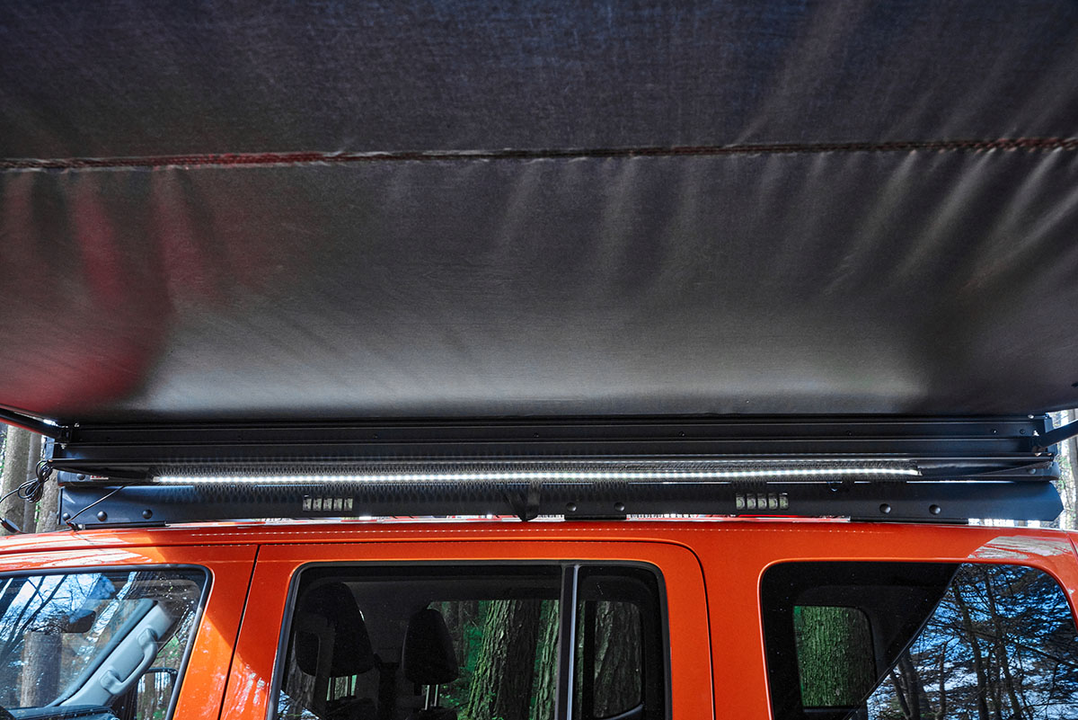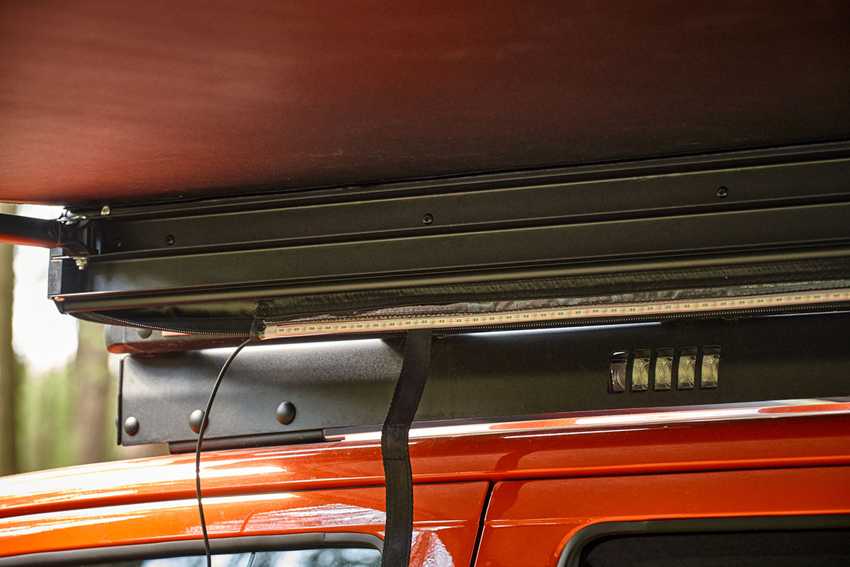 А еще маркиза оборудована подсветкой в виде светодиодной ленты, которая подключается к любому пауэрбанку (но он в комплект не входит).