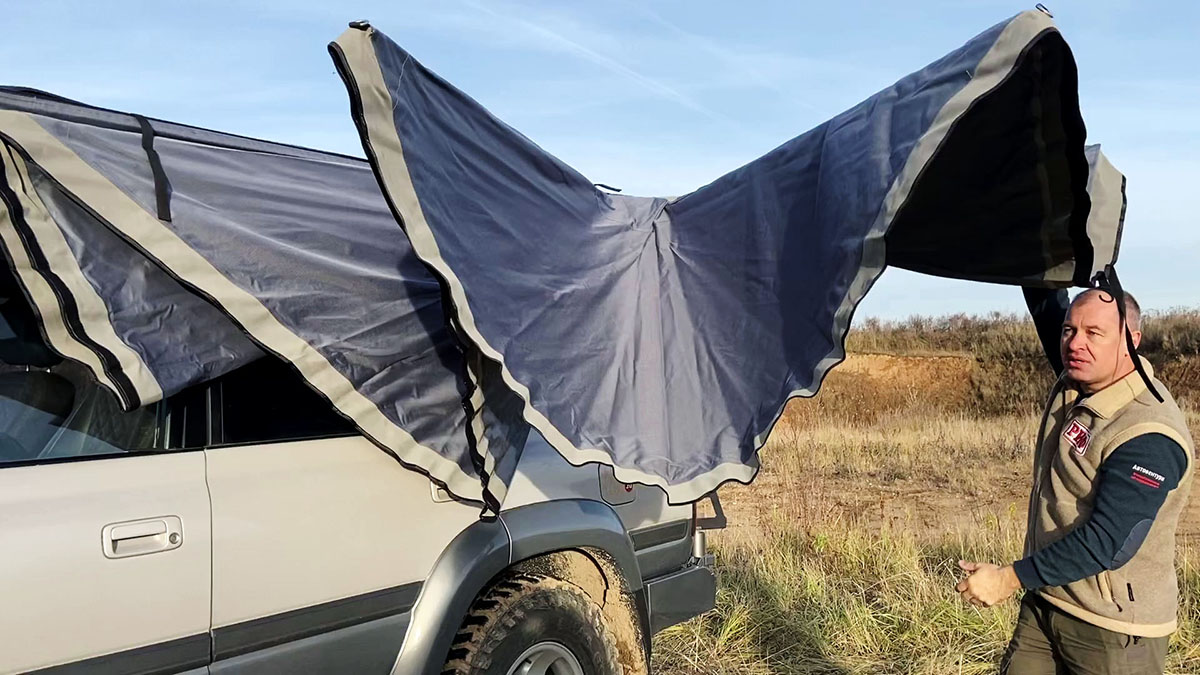 Маркиза автомобильная РИФ веерная, безопорная 2,3х2 м (левая): описание, фото, видео, характеристики, условия доставки и покупки оптом и в розницу, отзывы покупателей. Большой каталог Маркизы на официальном сайте интернет-магазина для внедорожников Автовентури