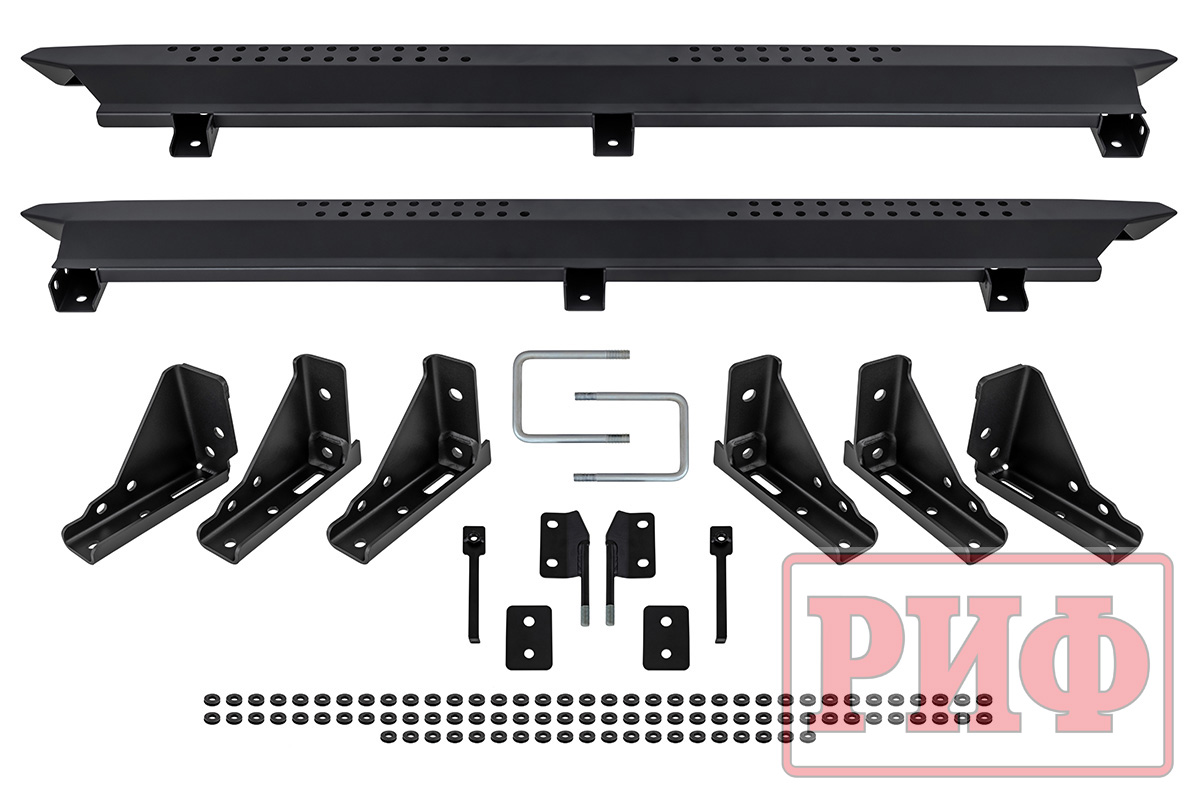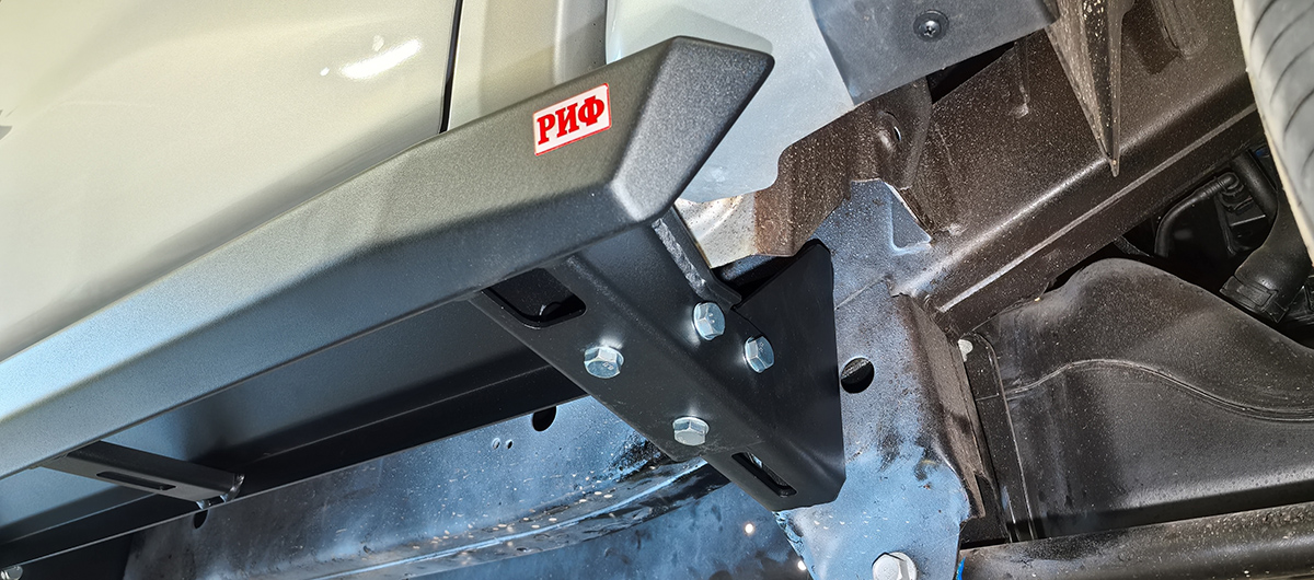 Пороги РИФ облегчают посадку и высадку из салона внедорожника, благодаря крайне прочной и долговечной конструкции, прекрасно подойдут для эксплуатации в любых, даже самых суровых, условиях.