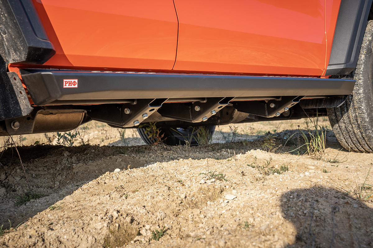Силовые пороги РИФ обеспечивают максимальную защиту кузова внедорожника как в городе, так и на бездорожье – можно упереться в бревно или камень, можно опереться на край колеи – порог обеспечит надежную защиту.