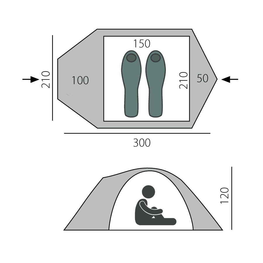 Модель с вертикальными боковыми стенками и 2 полноценных входа делают эту палатку максимально удобной для использования.